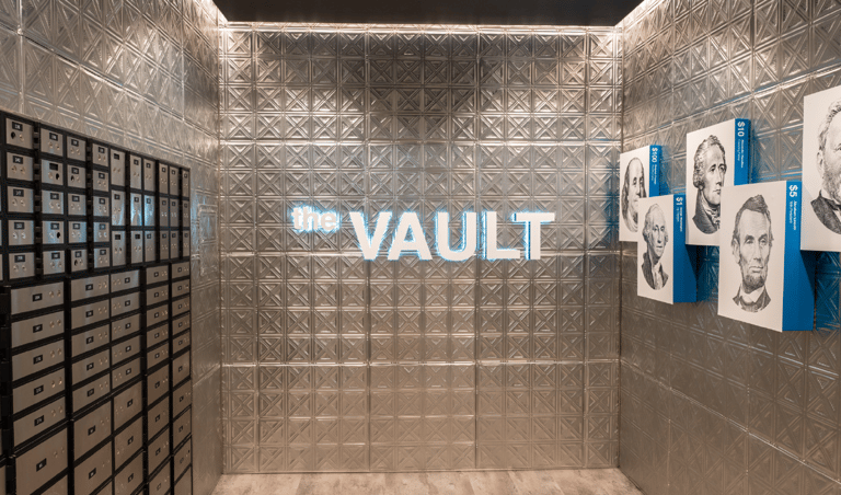 Amoco Credit Union was looking for a refreshed aesthetic and more efficient operating model to be delivered through their Clear Lake City Prototype. The space accommodates transactions, consultations and closings while having a boutique aesthetic. The vault was repurposed as an immersive experience focused on connecting the history of money to the history of Amoco. Role: Interior Design Strategy, Concepting, Development & Implementation