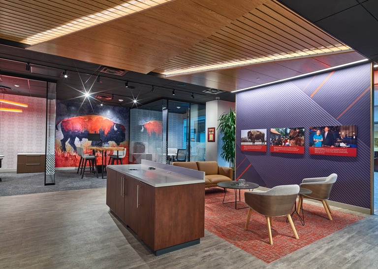 Looking for a new retail experience to celebrate their mascot, Mo the Buffalo, the prototype design broke down barriers between employees and customers allowing for financial collaboration with Mo celebrated as artwork at the heart of the branch. Role: Interior Design Strategy, Concepting, Development & Implementation